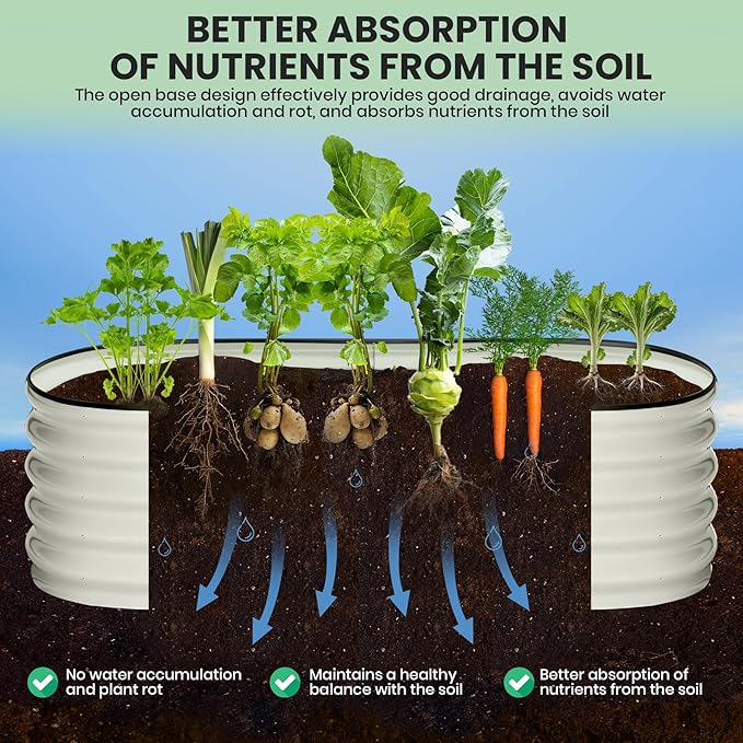 - 🌳 Unmatched Stability: Crafted with 0.5mm thick overlapping galvanized panels, reaching up to 1.8mm at the seams, our raised garden bed provides excellent strength and stability. The integrated screw fastening edge and unique oval form ensure it remains solid and secure, even when fully planted.