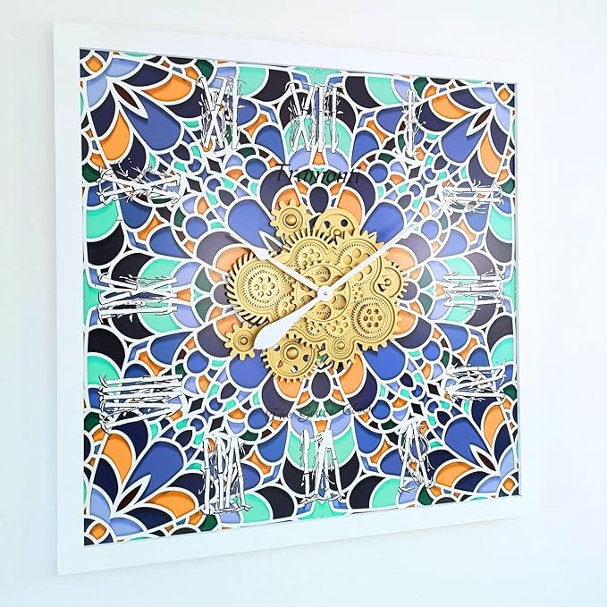 The Gears Clock Wall Clock Italy Collection with Moving Gears (Tramonti, 36 inch Square)