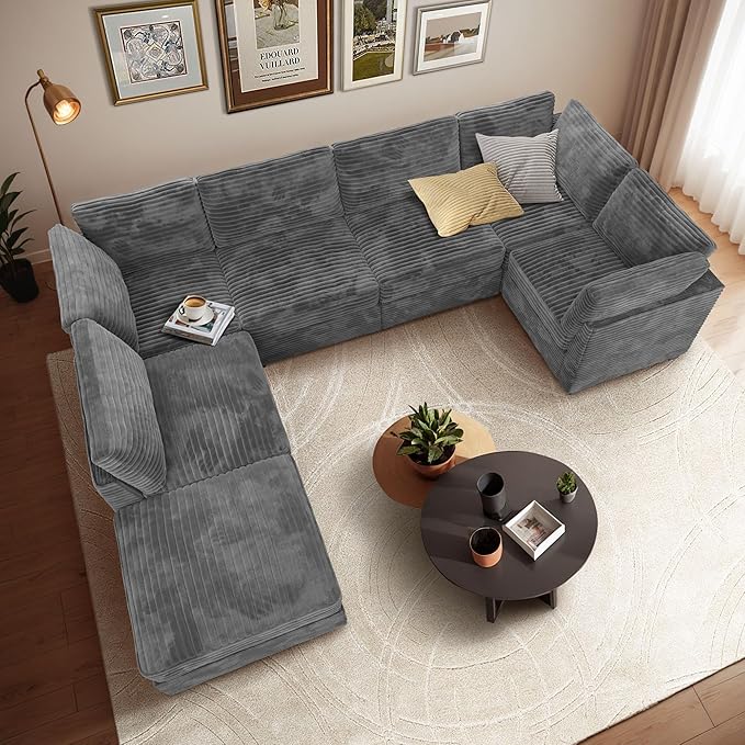 - Spacious Furniture:Sturdy solid wood frame, high-end breathable Plush corduroy fabric, filled with high rebound sponge, making this modular sectional sofa beautiful and comfortable, it can be a perfect match for your living room, bedroom, home office, etc.