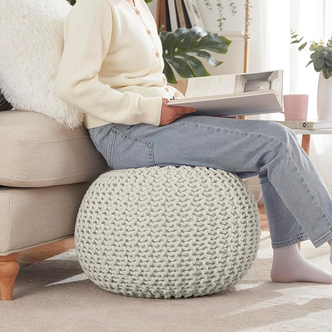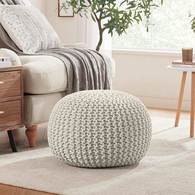- HANDMADE CRAFTSMANSHIP: Each pouf ottoman is meticulously hand-knitted by skilled artisans. This attention to detail ensures not only a unique and high-quality piece but also adds a touch of artisanal charm to your home decor that promises to be the center of conversation and admiration.