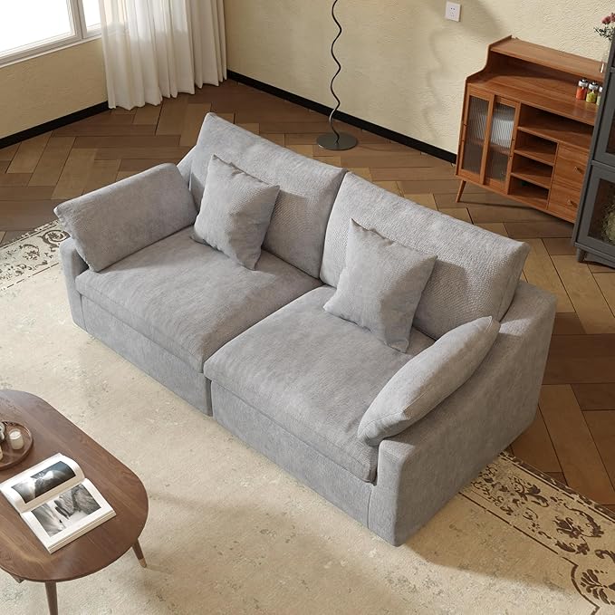 - ⛅[Comfortable Couch] Made of high-quality hemp velvet, the 2-seat couch is wear-resistant, wrinkle resistant, hard to deform, and as new as after long use. Built in pine frame for moderate softness and hardness, comfortable sitting, restoring natural relaxation.