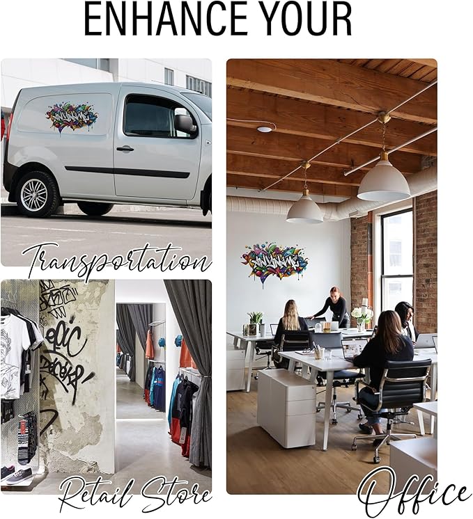 - DURABLE, WEATHER-RESISTANT DECALS: Our fade-resistant, weatherproof wall vinyl decals are perfect for both home offices and businesses, whether used indoors or outdoors. They remain vibrant over time, thus making them ideal to be used as a business logo that retains their original look even after repeated cleanings.