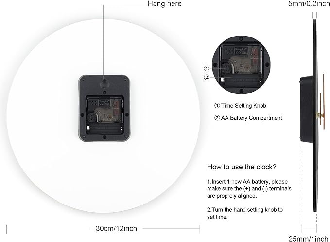 - No Annoying Ticking: The silent, precise quartz clock movement provides you a quiet environment without humming sound and ensures accurate time. After inserting 1 AA battery, you can put it in bedroom or office and it won't affect your sleeping or working. (Note: Battery is not provided.)