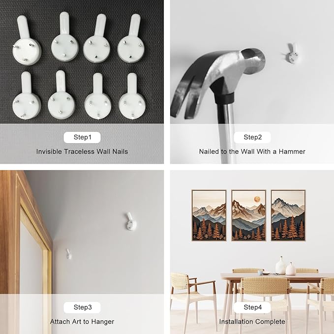 - Easy to Hang: Each of these three forest pine tree art prints pieces measures 16x24inches. It comes with all the necessary accessories so it's simple and easy to install. Simply choose where you want to decorate, make sure it's level and aligned the way you want it, and then nail it down with non-marking nails.