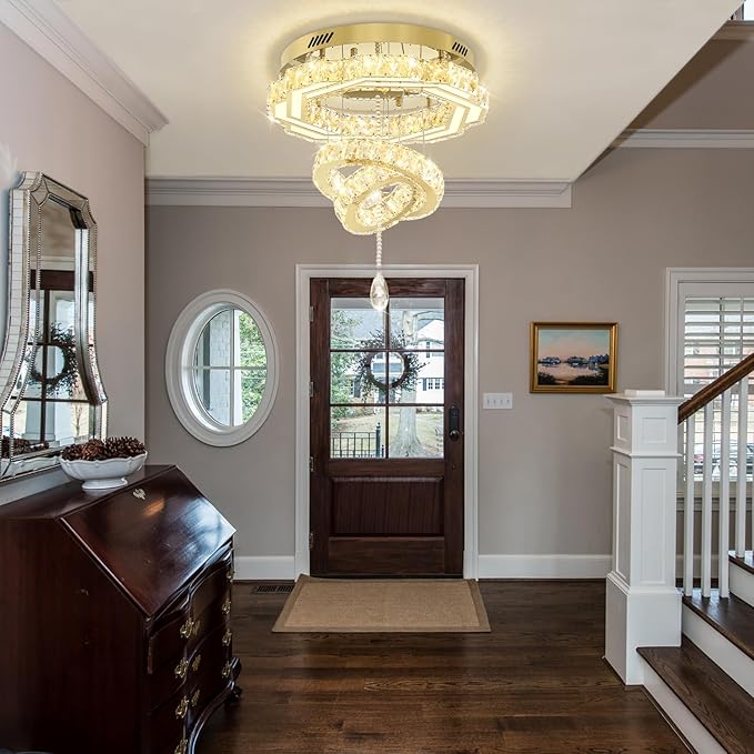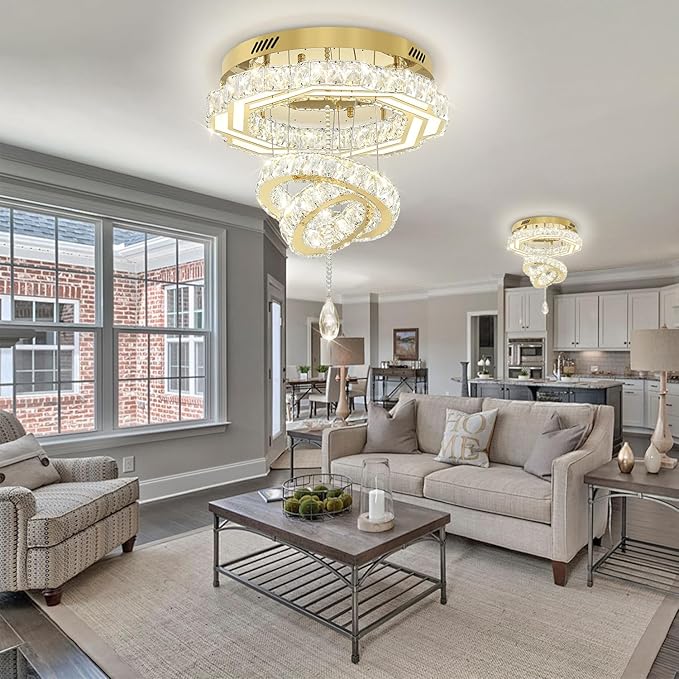 Flashing God 20" Crystal Chandelier Crystal LED Flush Mount Chandeliers for Living Room Bedrooms Dining Room Modern Gold Chandelier Lighting Dimmable 2700k 4500k 6000k