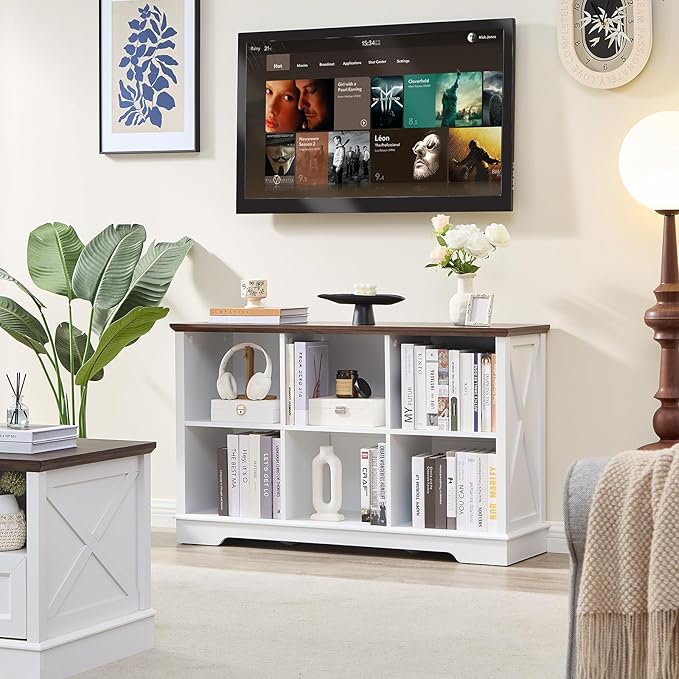 - 6 Cube Storage Space: Our farmhouse-style cube storage bookcase features six spacious compartments, perfect for organizing books, decor, baskets, and more. The rustic X-pattern side panels add a charming touch, seamlessly blending with our existing furniture collection to create a cohesive home decor set. Ideal for living rooms, bedrooms, offices, or closets, this bookcase combines functionality with timeless design