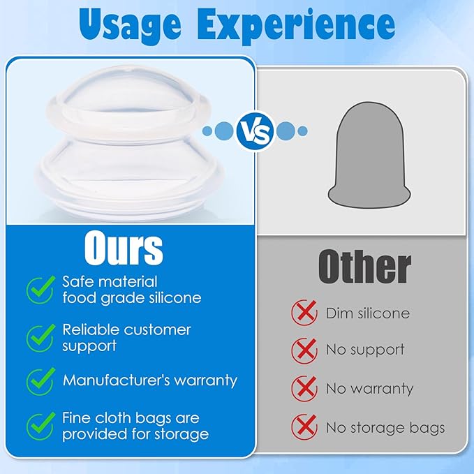 - Include 7pcs Massage Silicone Cups:Large Cups-2pcs, Medium Cups-2pcs, Small Cups-3pcs, A delicate flannel bag, Easy to store those cups.