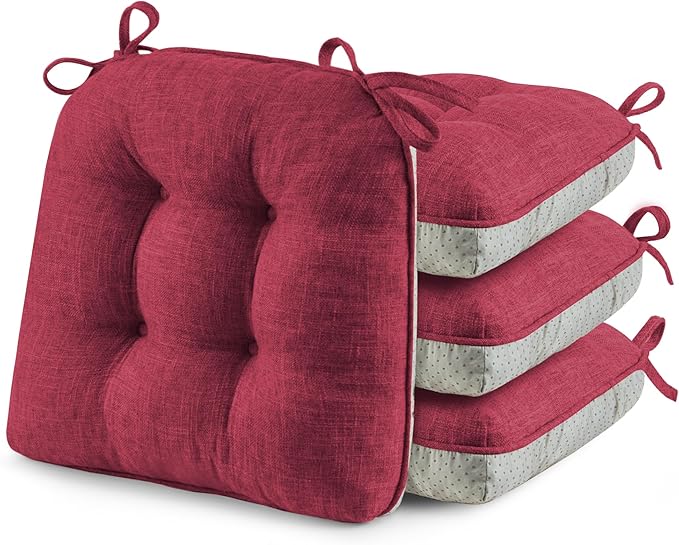 puredown® Chair Cushions for Dining Chairs, Tufted Memory Foam Chair Pads with Non-Slip Backing, Kitchen Seat Cushions with Ties, Washable Pads Set of 4, 15.5" x 15.5" x 4", Wine