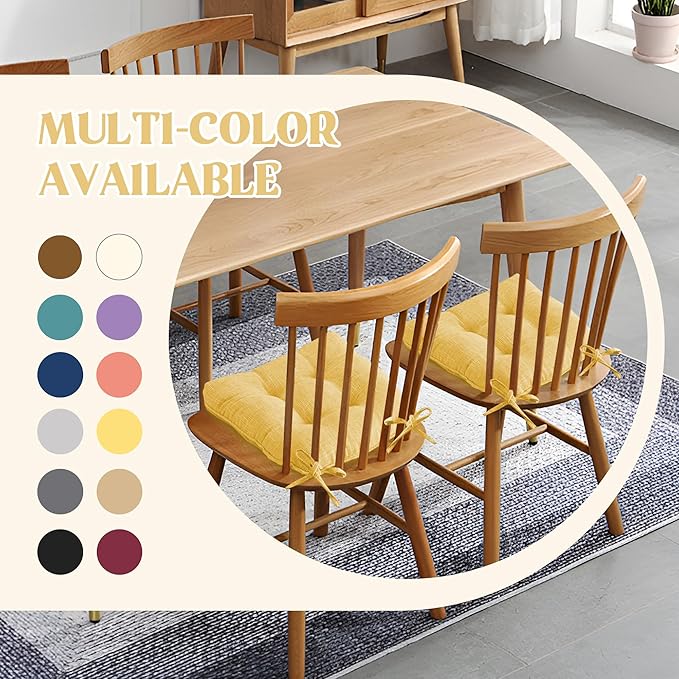 puredown® Chair Cushions for Dining Chairs, Tufted Memory Foam Chair Pads with Non-Slip Backing, Kitchen Seat Cushions with Ties, Washable Pads Set of 4, 15.5" x 15.5" x 4", Yellow