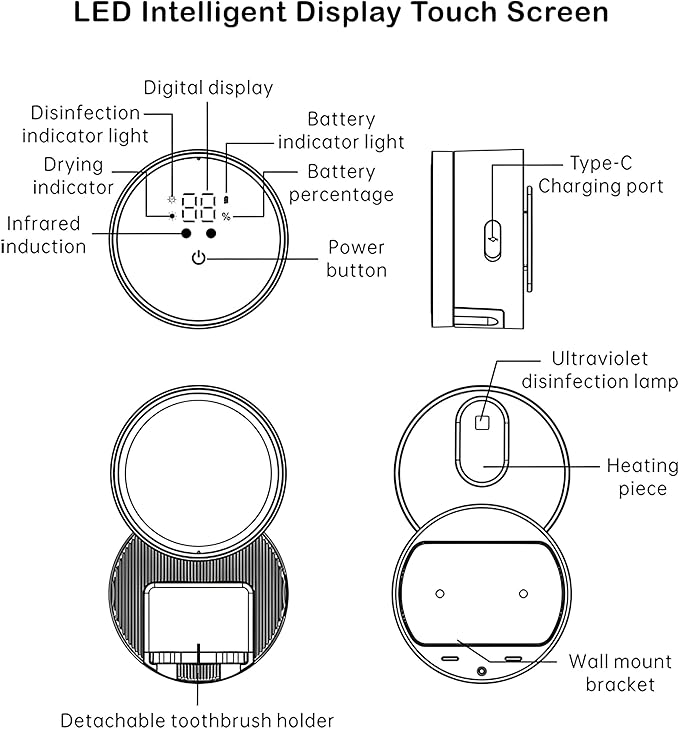 - โ ๐๐ข๐๐ง๐ฉ ๐๐๐ฟ ๐๐๐ง๐๐๐ฃ ๐ฟ๐๐จ๐ฅ๐ก๐๐ฎ - The toothbrush cleaner holder features an LED screen that provides real-time monitoring of battery status, cleaning progress, and drying status, ensuring full control with a single glance