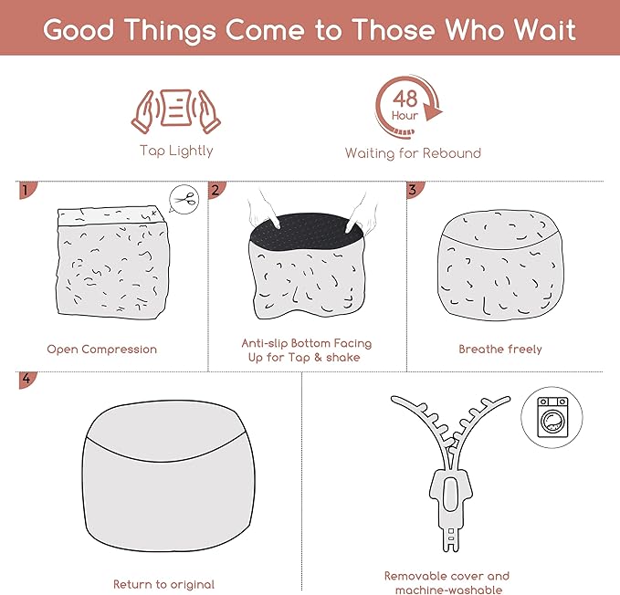 - 【REMOVABLE DESIGN】- For convenience and ease of use, this pouf ottoman comes stuffed with memory foam chunk pouf filler. Meanwhile, the cover can be easily set with the large round zipper on the bottom after cleaning.