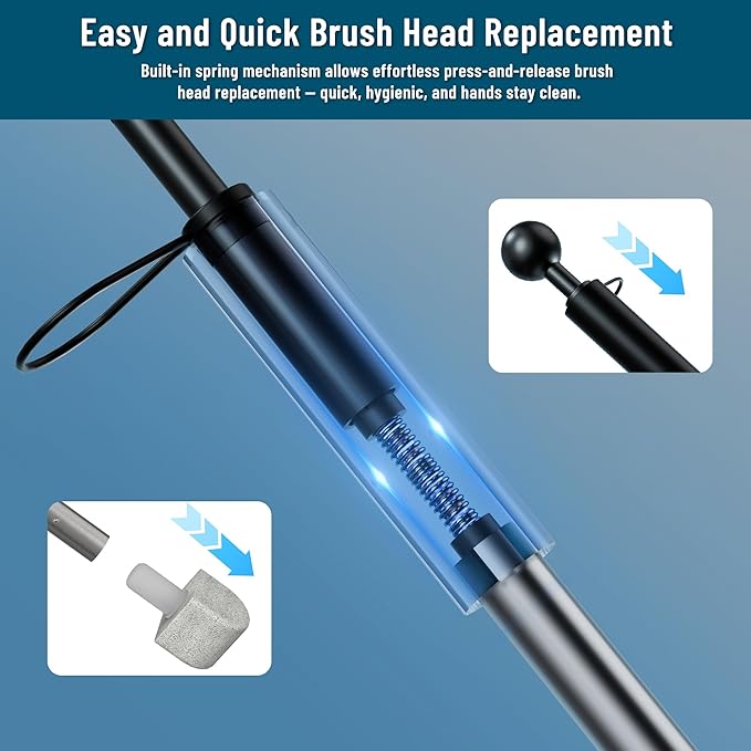 - [Easy Attach/Disposal]---The disposable toilet brush refills easily attach,and eject for disposal by simply pushing the sphere at the top of the handle.