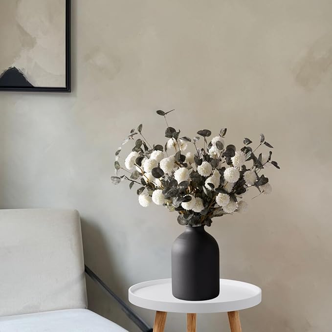 - Dusty Green Eucalyptus Stems For Home Decor: These 6 artificial greenery branches, measuring 23in, are designed as long stem artificial flowers for tall vases, adding depth to your greenery decor. Pair them with Ryddelighome Kiku flowers in white, beige, or yellow for a cohesive look, creating dynamic centerpieces or vase fillers that enhance dining rooms or living spaces with a natural, layered effect.