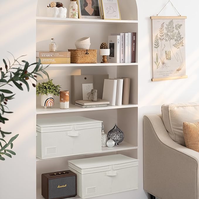 GRANNY SAYS Fabric Storage Bin with Lid, Decorative Storage Boxes, Basket for Shelves, Closet Storage Bins, Large Storage Bins for Clothing, Jumbo, Ivory, 2-Pack