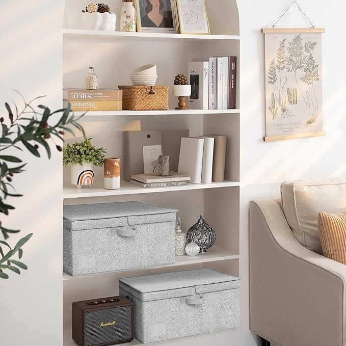 - 【Versatile Function】The large fabric storage box with lid is perfect for organizing the closet, shelf, bedroom, play room, living room, wardrobe, laundry room, office, RV, and camping.