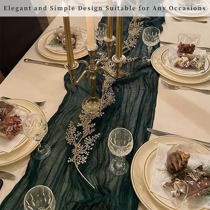- Cheesecloth Table Runner Size: You will receive 12 emerald green cheesecloth tablerunner, each measuring 20 x 120 inches. The quantity is sufficient for you to decorate various romantic occasions. It can decorate most shaped tables, such as rectangular tables, round tables, and cocktail tables. It is long enough to decorate a large table and be placed perfectly and elegantly on the tabletop, adding a romantic atmosphere to your occasion.