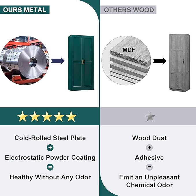 - MATERIAL: The kitchen food storage cabinet is crafted from cold-rolled steel plate(SPCC), ensuring it is sturdy and durable. Steel plates are covered with an environmentally friendly powder coating. Compared to traditional wooden or plastic cabinets, UNICOLY kitchen food storage cabinets are corrosion-resistant, easy to clean, and odourless