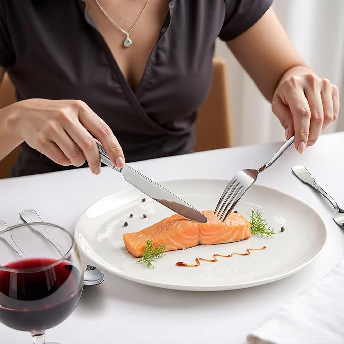 - COMFORTABLE & FUNCTIONAL: The ergonomic design of the handles ensures a comfortable grip, making it easy to handle and use. The balanced weight distribution adds to the overall functionality, allowing for effortless cutting, scooping, and stirring. Enjoy a pleasant dining experience with these HIKAA utensils.