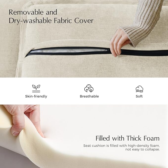 - Luxury Chenille Fabric: Upholstered in soft and durable chenille fabric with elegant ruffled edges, this sofa combines comfort and style. The removable, dry-cleanable fabric covers make maintenance a breeze.