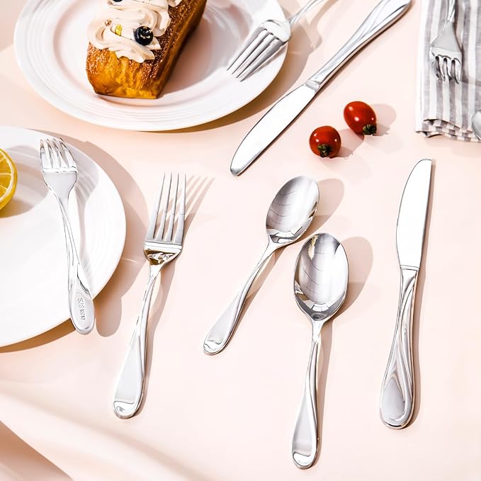 - FIBONACCI PATTERNS: The HIKAA Silverware Set is crafted of high-performance 18/0 stainless steel, features the design of the wave pattern, which is more beautiful, and has anti-slip performance. It make your tableware less fingerprints, also makes dishwasher cleaning easier without damaging the surface texture.