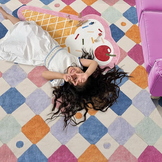 - Warm Vintage Colorful Design: Adorned with delightful diamond lattice splicing pattern against a soft cream bottom, this rug adds a playful charm to children's rooms and infuses vitality into adult spaces