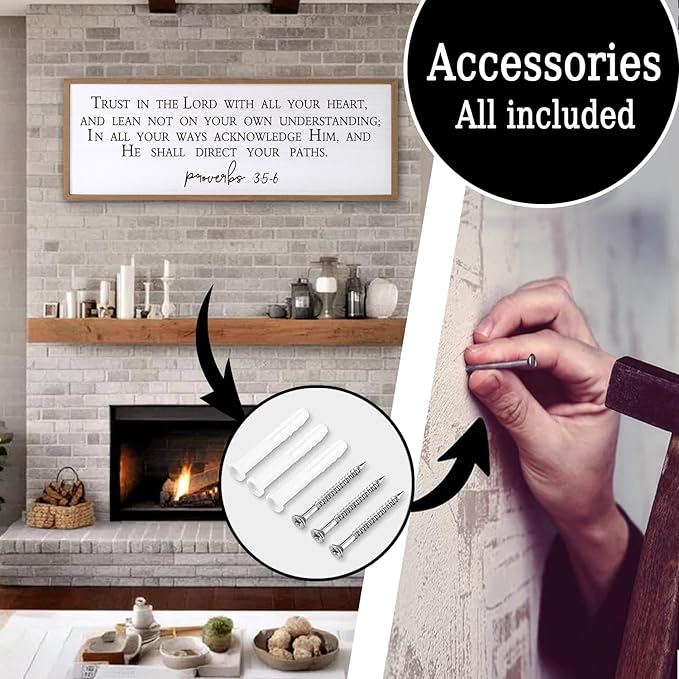 Trust in the Lord With All Thine Heart Wall Decor Art Bible Verse Sign Proverbs 3:5-6 Framed Wood 32X12 Inch For Scripture Christian Hanging (Wood)