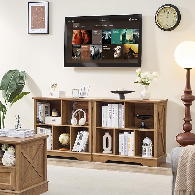 - Rustic Farmhouse Design with X-Pattern: Enhance your home decor with our unique farmhouse style bookcubes, this bookcube features retro wood grain, combining timeless farmhouse charm with modern functionality, suitable for different styles of home decor. It is an artistic display for your living room, bedroom, study, and office. You can use it as open shelf bookcase, collectible display shelf, file cabinet, and sideboard. Its nimble storage space can effectively help you organize and display your items