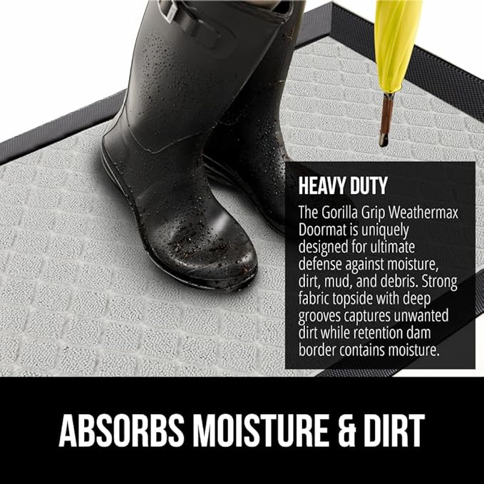 - THE ORIGINAL WEATHERMAX ALL SEASON DOORMAT: Gorilla Grip's Original WeatherMax doormat is built tough with a heavy duty, yet soft and flexible construction; deep grooves, beveled rubber border and retention dam help capture dirt, debris and moisture