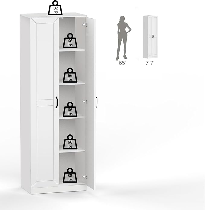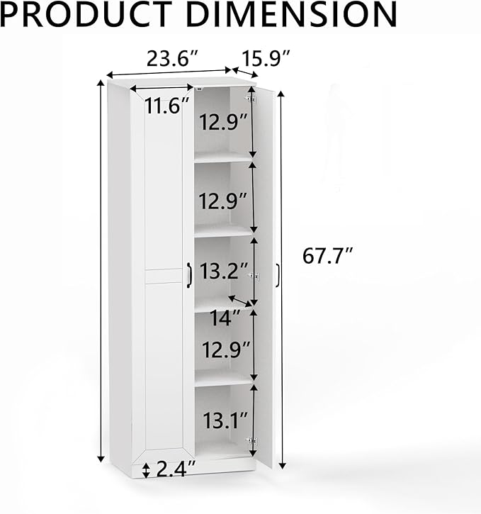 - User-Friendly Installation: 71" H×23.6"W×15.7" D. With detailed assembly instructions and video tutorials included, setting up this kitchen storage cabinet is a breeze. The cabinet has a reliable anti-tipping mechanism to ensure enhanced safety and prevent potential dangers, It is friendly to children and pets