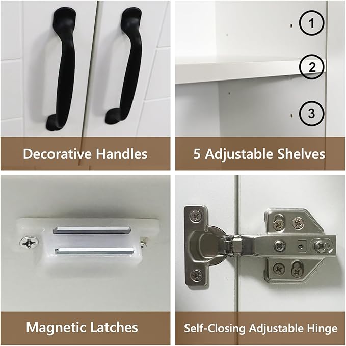 - Multifunctional Cabinet: Our 2 door wooden cabinet features a freestanding design, which you can use for a pantry cabinet, food cabinet, kitchen cabinet, kitchen cupboard, utility cabinet, laundry room cabinet, bathroom cabinet, bedroom wardrobe, bookcase, tool cabinet, file cabinet, appliance cabinet, etc. It will be your good choice for storage and organization