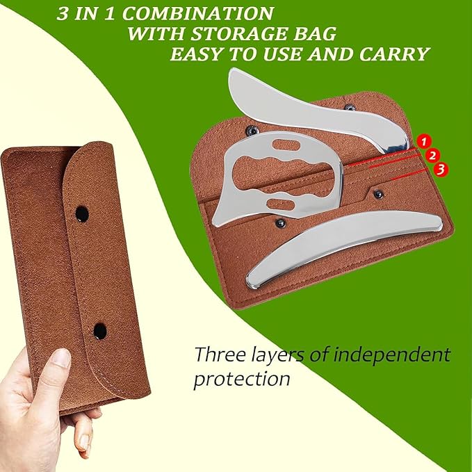 - Ergonomic Multi-Tool Set – Includes a variety of scraping tools with contoured edges, each designed to target different muscle groups comfortably and effectively.