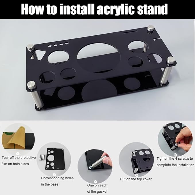 - The material of the stand is acrylic, and the 4 columns are stainless steel.