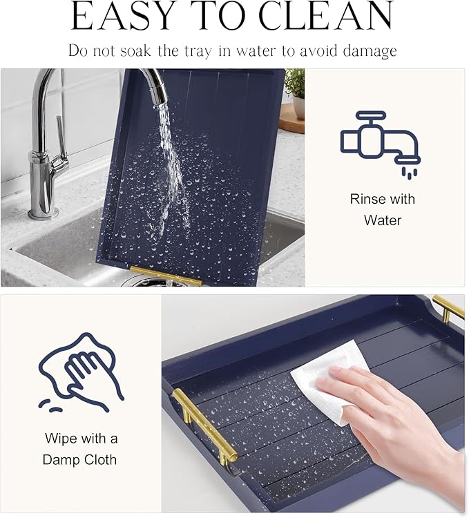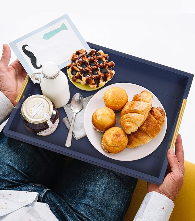 - 【WHO DOESN'T LOVE HANDCRAFTS?】Have to say our rectangle wood serving tray is so functional and stylish at the same time. Every paint process is completed by our hard workers, who aim to make each beautiful tray to prevent splinters, paint chips, and scratches. It's lightweight but sturdy enough to be used as a coffee table tray for the living room
