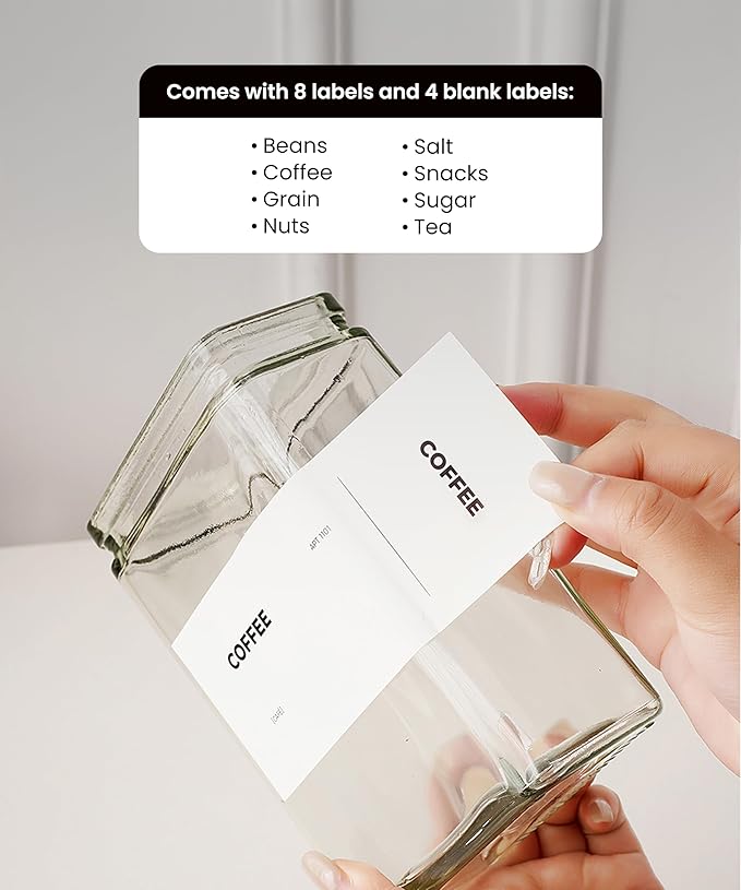 - 【Includes Reusable Labels for Effortless Organization】Bundle includes 8 pre-printed labels and 4 blank labels. Perfect for rotating pantry staples or kitchen essentials.
