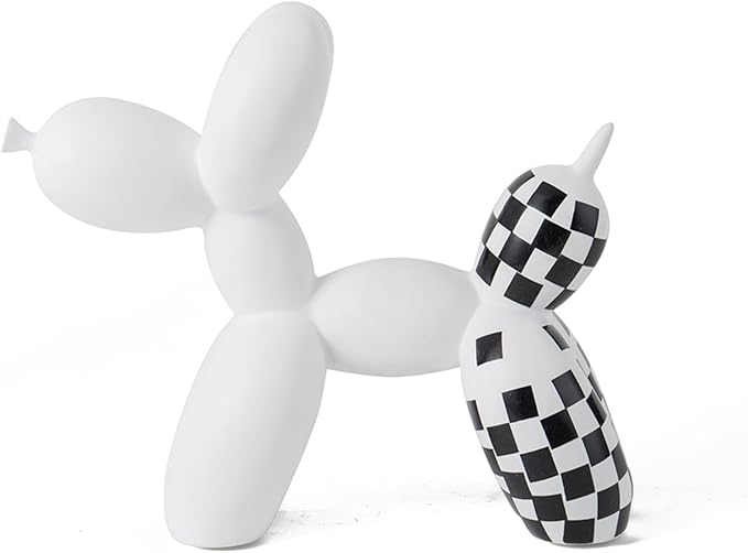 Vilead Resin Balloon Dog Statue with Checkered Pattern,Modern Home Decoration Trendy Animal Art Ornaments,Collection Figurine Bedroom Living Room Office Desktop Sculpture
