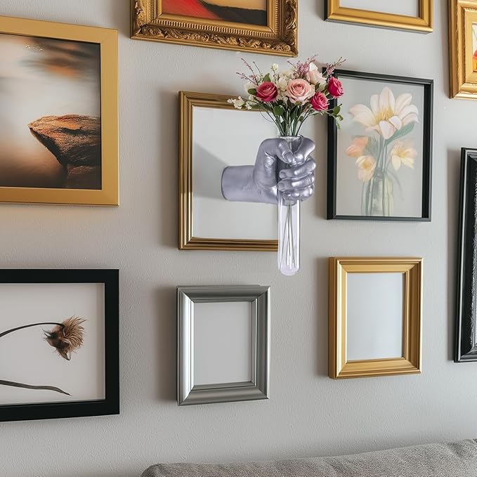 Silvery Wall Sculptures, Hand Vases Home Decor, Wall Mount Art Sculpture, Unique Wall Art Statue, Funky Flower Vase Decorations, Modern Eclectic Hanging Decor,Glass Test Tube Vase (Silvery)