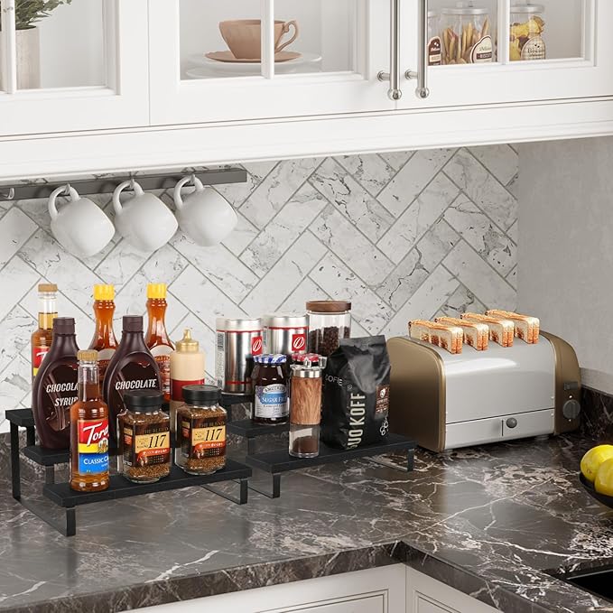 - Quick Setup & Easy Cleaning: You can have this 3-tier display riser stand assembled in 10 minutes with detailed instructions and tools. The wooden surface is waterproof and dust-free, a damp cloth could keep the counter shelf clean. (Assembly tools and accessories are included in the package)