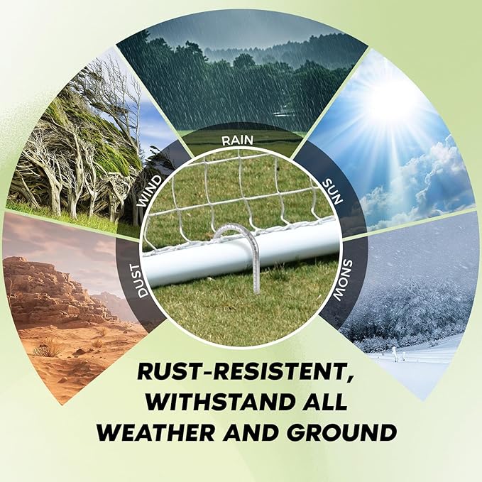 - 【12 inches Stakes Heavy Duty】Sold in bundles of 34 pieces, 12 inches length from tip to hook, 5/16"(8mm) diameter fence stakes. The hook is 2", pefect for holding down inflatables, stake down a tarp, lawn decor, chain link fence etc.