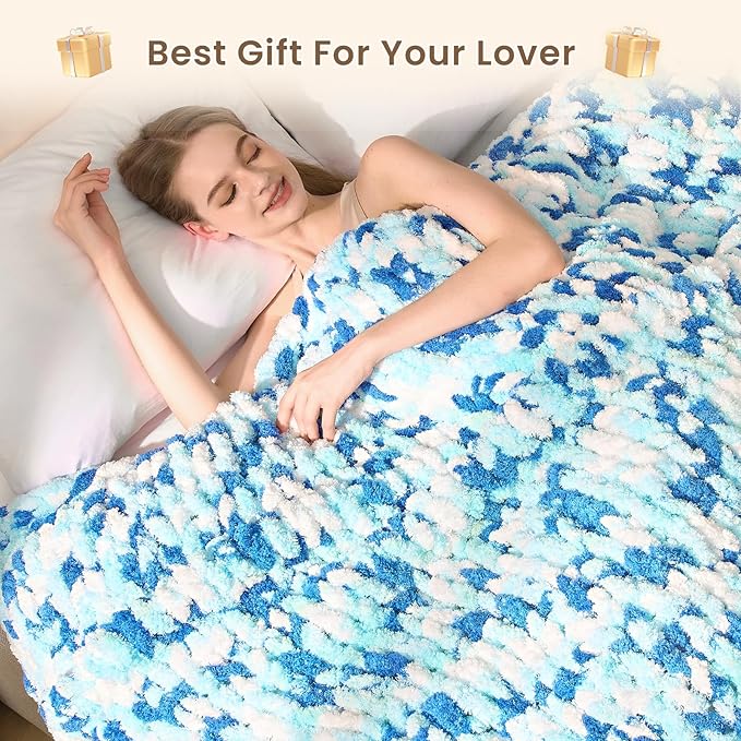 - 100% Handmade Chunky Knit Blanket: Our knit blanket throw is made from 100% hand-woven fabric with premuim Chenille yarn, excellent handcrafted knitting improves yarn density to create a warm and soft touch, full body hug to immerse you in tenderness