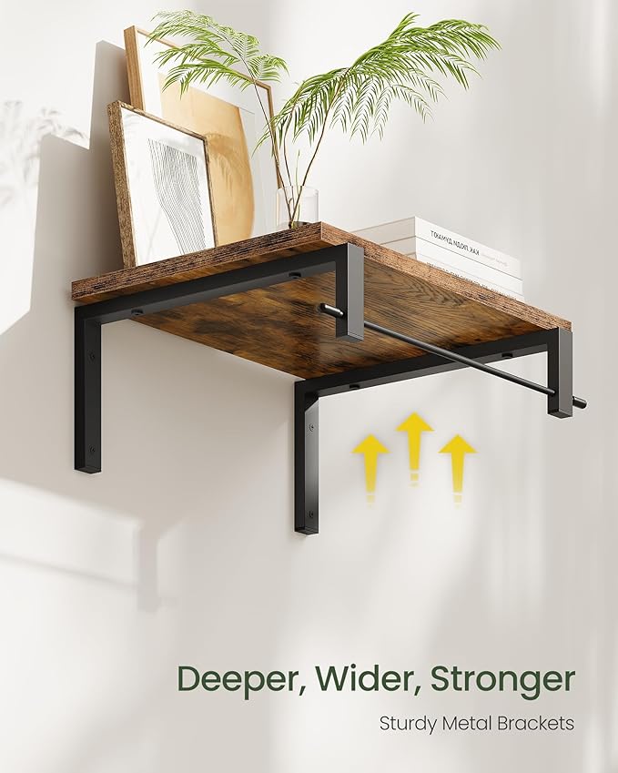 - Sturdy and Enduring: The wall shelf set is made of thick, widened particleboard that can withstand wear and tear and are easy to clean. Paired with a robust metal frame and extended screws for secure wall mounting, each shelf holds up to 33 pounds