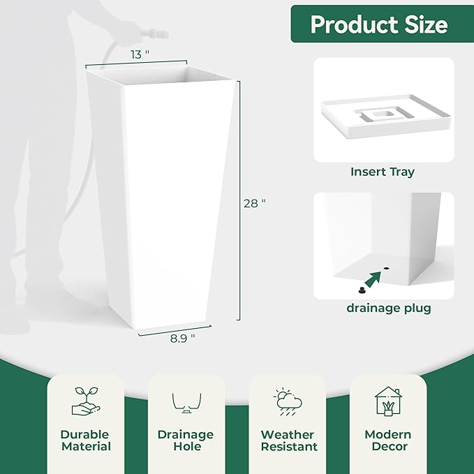 - Large & Stylish Planters – Each pot stands 28 inches tall with a sleek tapered silhouette, offering a bold and modern look that complements any garden, patio, or front porch.