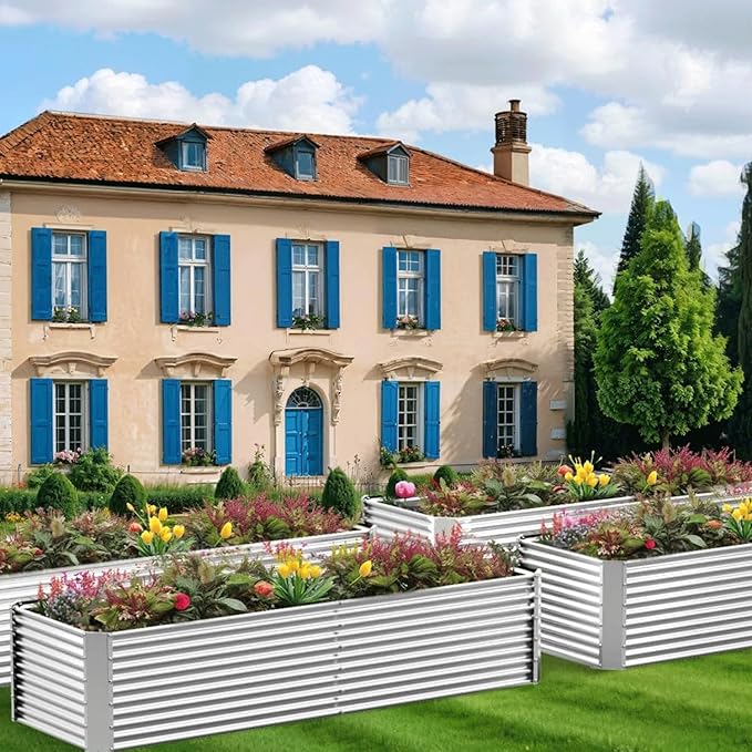 - 【Durable Galvanized Steel Construction】:Crafted with high-quality galvanized steel, this metal raised garden bed is built to last. The anti-corrosion coating ensures long-term durability, while the sturdy structure withstands heavy soil and weather conditions, making it perfect for outdoor use. Unlike traditional wooden garden beds, it resists warping and rotting over time.