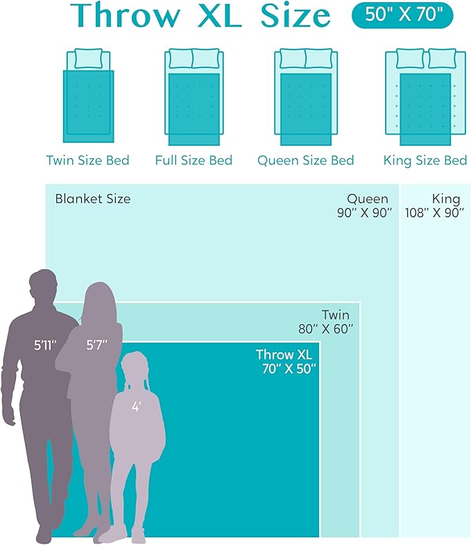 - All-Season Comfort in Every Size: Choose your size from 50”x60” (2 lb), 50”x70” (2.4 lb), 60”x80” (3.3 lb). Lightweight yet, it’s made for every season—from chilly summer nights to full winter mode. Drape it over your office chair, toss it in the car, or bring it along for picnics—it’s cozy comfort wherever you go.