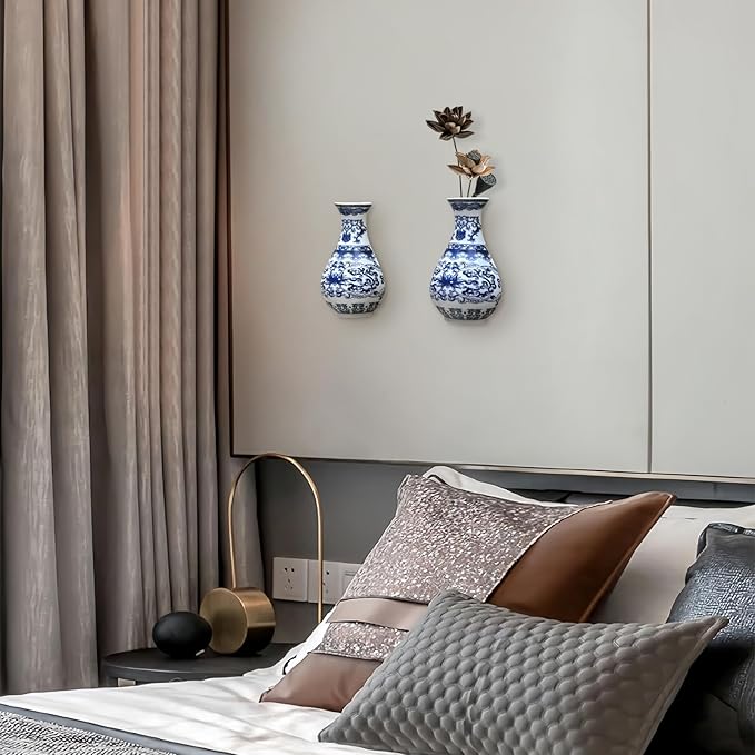 - Chic Home Accent: Infuse modern spaces with classic charm. These blue and white ceramic wall decor pieces work as wall mounted flower vases for home décor, enhancing your living room, entryway, or office with cultural flair