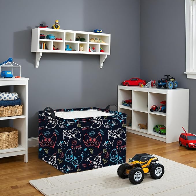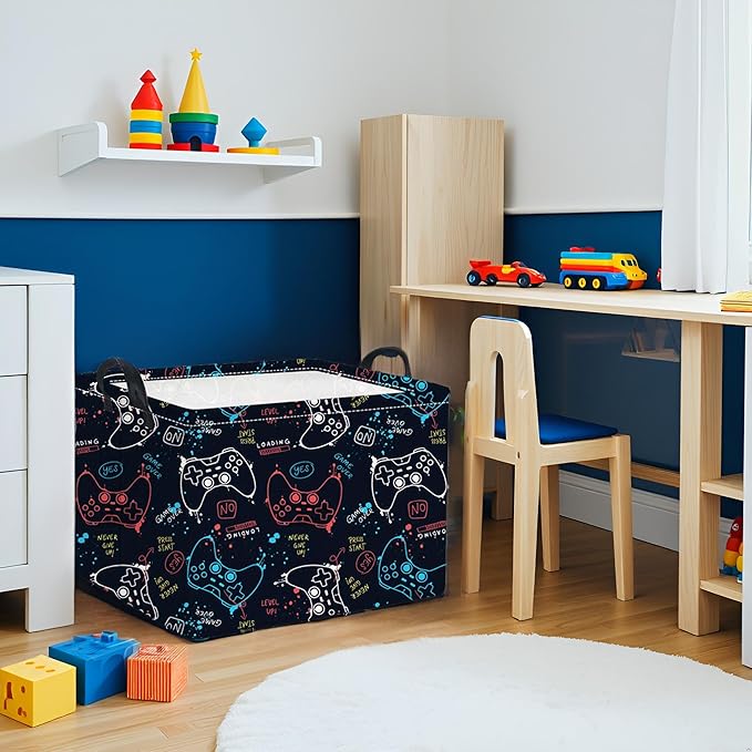 HIYAGON Rectangular Game Basket for Boys Kids Baby Storage Basket Storage Bin Organizer Box Room Decor(Game)