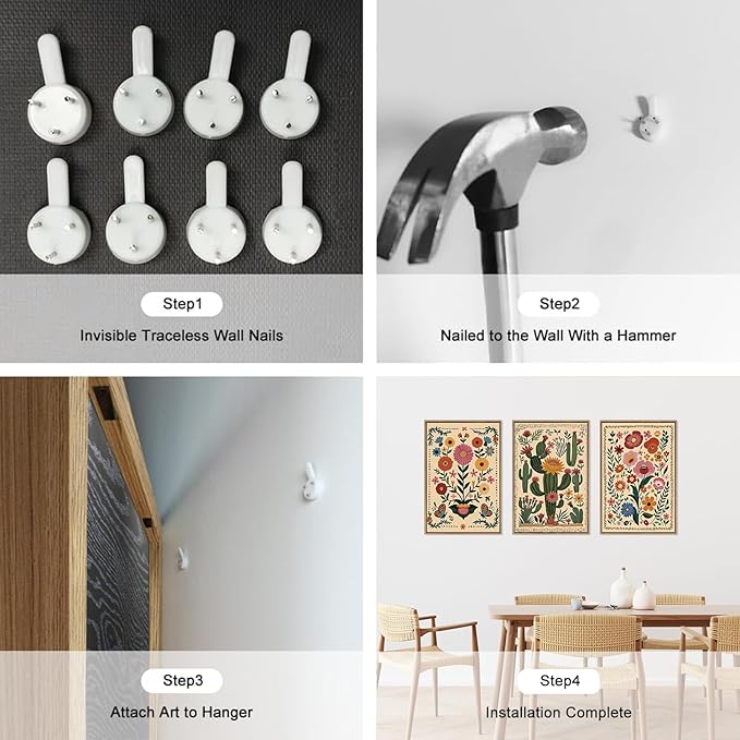 - Simple To Install: Each of these three colorful floral cactus landscape art prints pieces measures 16x24inches. It comes with all the necessary accessories so it's simple and easy to install. Simply choose where you want to decorate, make sure it's level and aligned the way you want it, and then nail it down with non-marking nails.