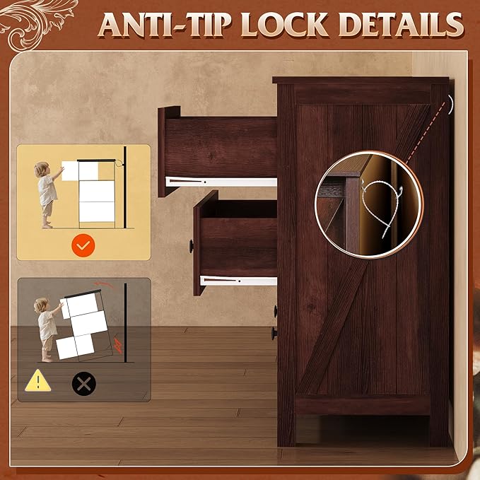 - 🎄【Structure Stable and Smooth】The dresser drawer features a middle support plate for stability and load capacity, smooth metal slides for easy pulling, which allows drawers to open fully without tipping for better storage.