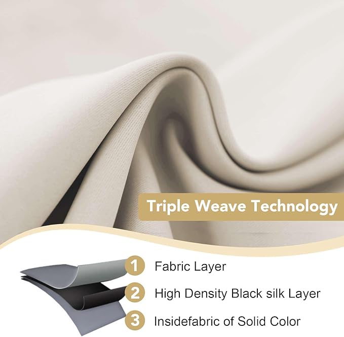 - MULTIPLE FUNCTIONS: These soft and durable curtains are made by innovative technology durable yarn, high performance on room darkening, thermal insulated, noise reducing, energy saving / efficiency and privacy protection