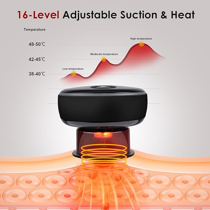 - 【16-Level Adjustable Suction & Heat】Experience precision control with this cupping set, offering 16 levels of suction strength and heat. The cupping uses advanced heating to relax muscles, improve circulation, and reduce lactic acid buildup. Perfect for body cupping and targeted relief.