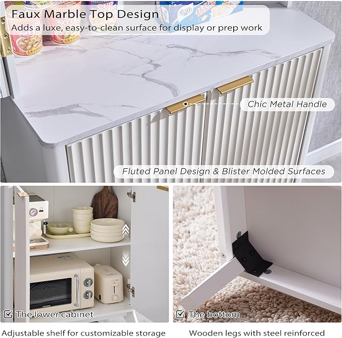 - 【Luxury Meets Functionality】Display or prep on the faux marble top—scratch-resistant and easy to clean. Engineered wood core withstands 200+ lbs weight (tested for stability). Gold handles feature anti-tarnish coating for lasting shine.
